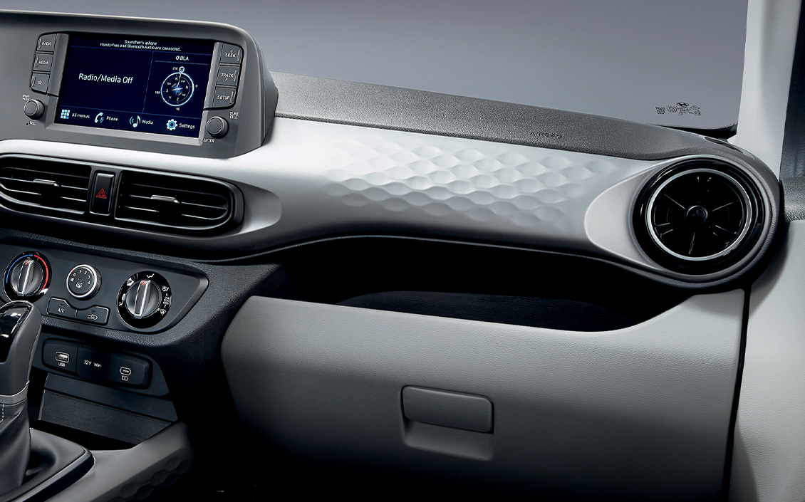 Plongez dans l'intérieur retravaillé de la nouvelle Grand i10. Des touches de couleurs élégantes et l'emploi de matériaux variés de qualité viennent enjoliver l'espace de manière à rendre l'expérience de conduite plus agréable. Une planche de bord bi-ton habille l'espace de manière unique et distinguée avec un motif embossé en référence à celui que vous trouverez sur les sièges avant du véhicule.