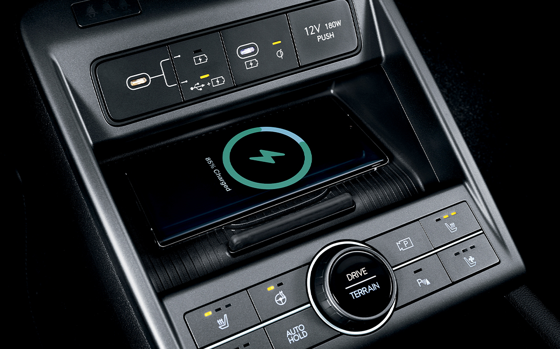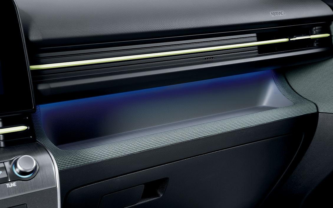Finement intégré au sein de l'habitacle, l'éclairage d'ambiance 64 couleurs du nouveau KONA apporte une touche élégante de lumière. Relié aux différents modes de conduite, celui-ci change de couleur en fonction du mode choisi et vient accentuer votre expérience de conduite.