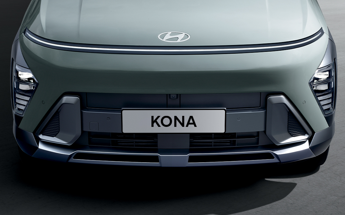 La face avant du Nouveau KONA met en valeur ses volumes et accentue son aérodynamisme grâce à sa signature lumineuse unique nommée Seamless Horizon.